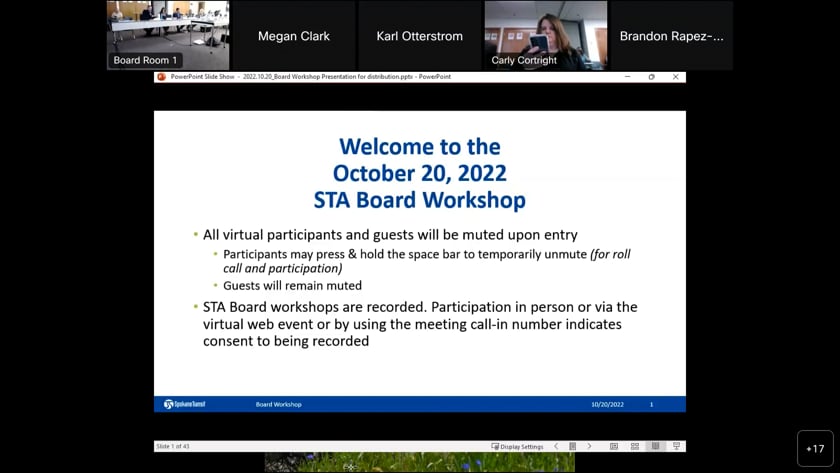 *The broadcast of the video of the STA Board Meetings on City Cable Channel 5 occurs at 4:00 p.m. on the Saturday following the meeting, 10:00 a.m. on the Monday following the meeting, and at 8:00 p.m. on the Tuesday following the meeting.